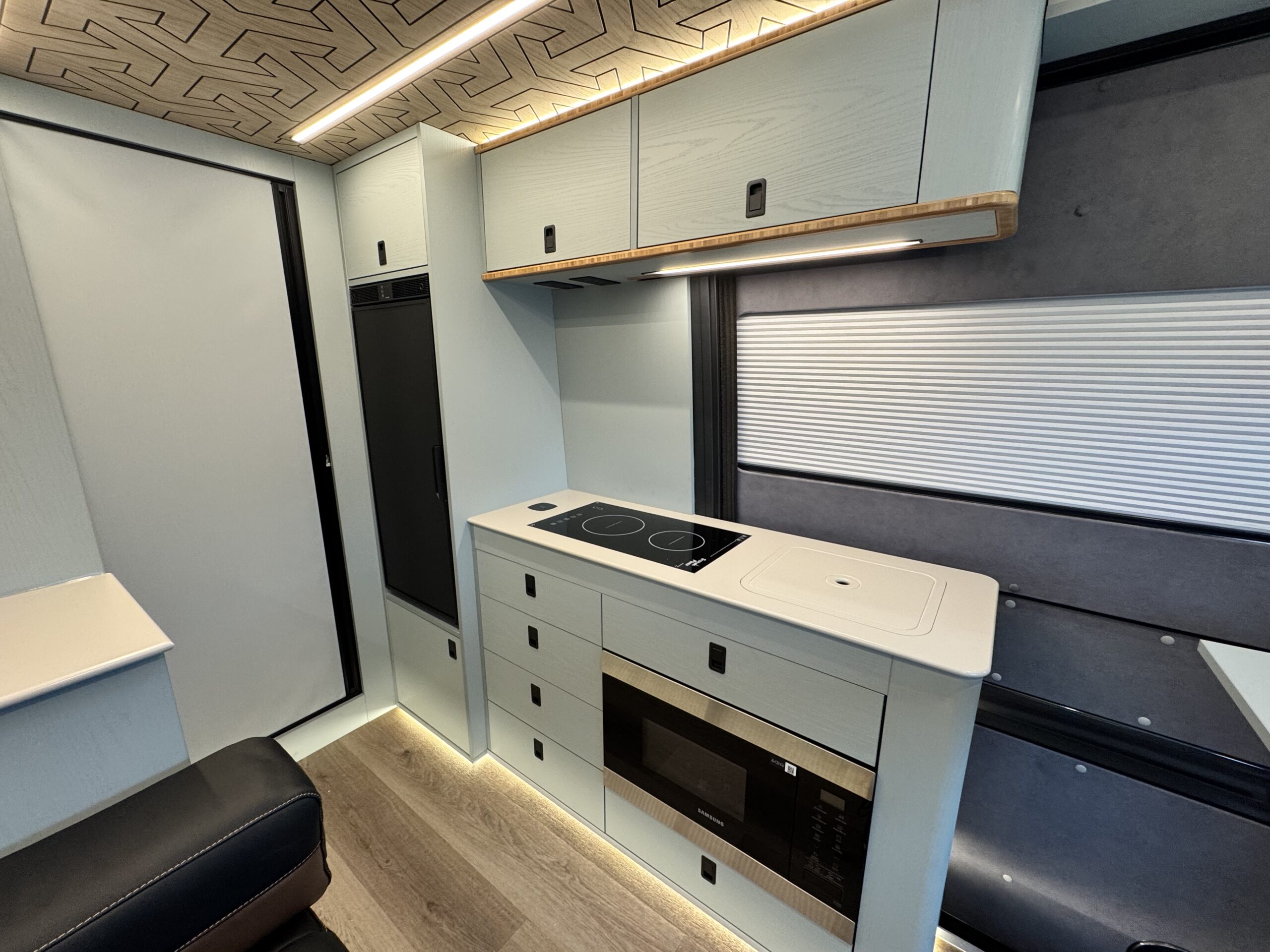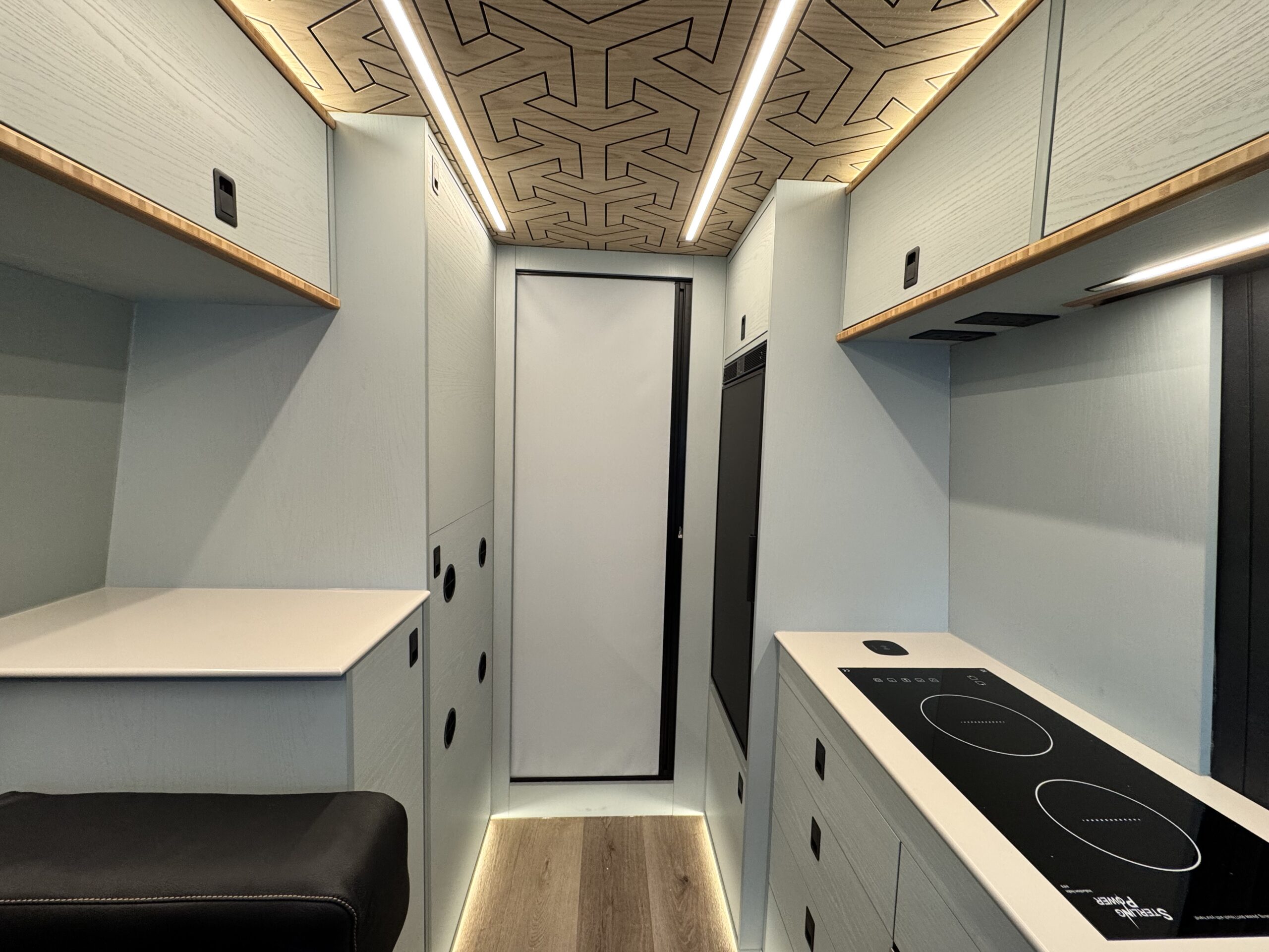 We don’t just fit kitchens – we build them in-house, so every unit matches your taste, your layout, and your van. Precision joinery, modern finishes, and clever storage solutions come as standard.